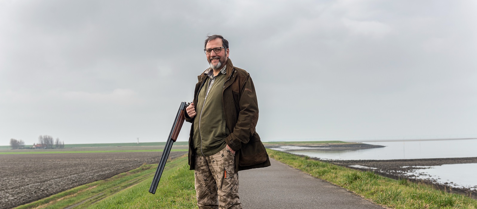 Sarmad Kayat werd geboren in Irak, maar als jager voelt hij zich thuis op de klei in de Hollandse polder. Kayat: ‘Ik ben een echte stadsjongen. Voordat ik drie jaar geleden aan de opleiding begon kon ik met moeite een duif van een kraai onderscheiden. Ik wist wel iets van de jacht omdat mijn vader vroeger in Irak ook jaagde, maar ik was er niet mee bezig. Dat begon pas toen ik meer in de natuur wilde zijn. Ik maak kunstgebitten en zit de hele dag thuis in mijn werkruimte. Dan is het heerlijk om even de vrije natuur in te kunnen. Nu draait mijn hele leven om de jacht. Bij een boer doe ik schadebestrijding en ik neem elke uitnodiging aan die ik krijg.’