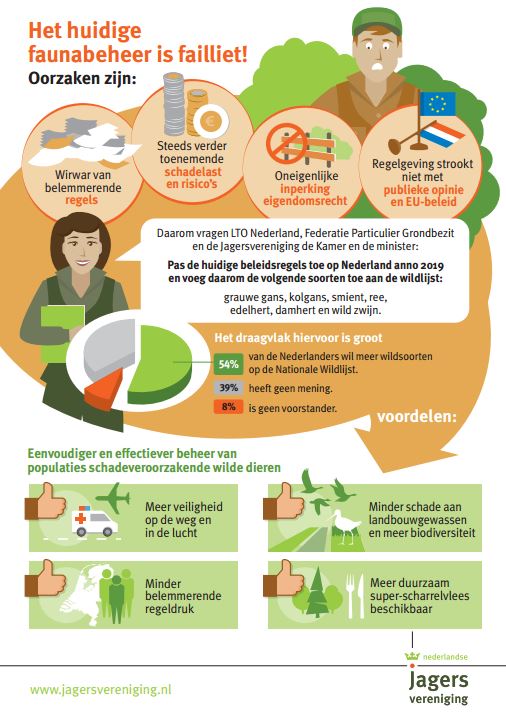 Vandaag ontvingen alle leden van de Tweede Kamer een brief namens de Jagersvereniging met haar pleidooi voor uitbreiding van de wildlijst. Op basis van feiten wordt getoond dat het huidig faunabeheer failliet is.