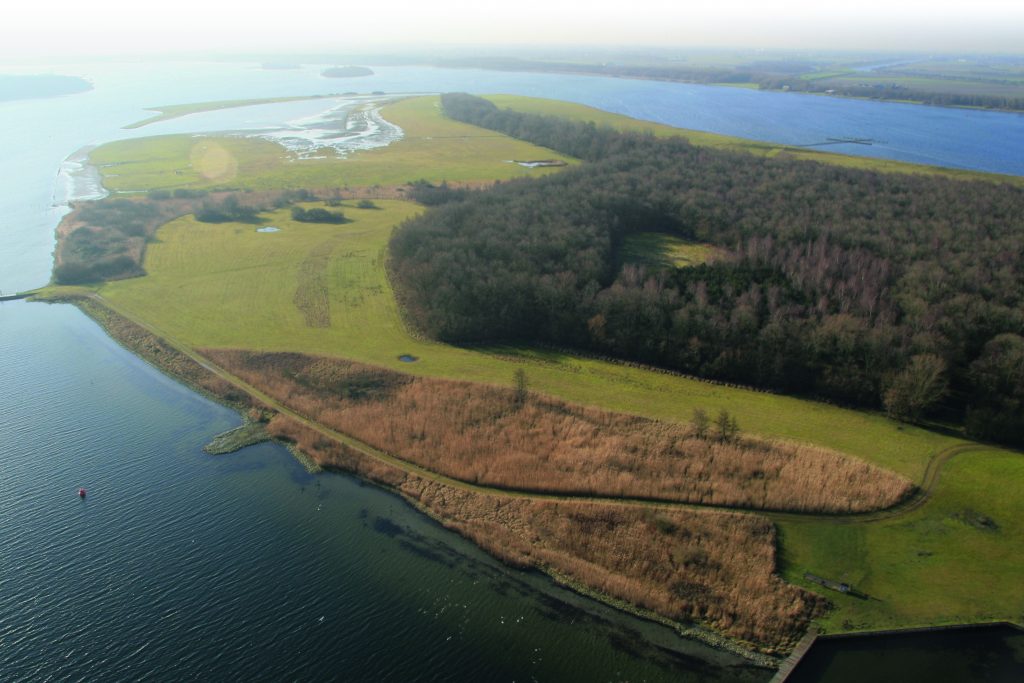 Deze winter hebben de dieren geluk. De kale bomen van het bosgebiedje in het midden van het eiland hebben weinig voedsel te bieden en de grasmat ziet er behoorlijk kaalgevreten uit, maar dankzij de extreem zachte winter valt er nog wel wat te grazen. Op de weidegebieden aan de randen van het eiland staan de bewoners zich dan ook massaal tegoed te doen. De zon is zojuist doorgebroken en vanuit de helikopter van Ton Prince hebben we goed zicht op de populatie. Na een paar rondes over het eiland gevlogen te hebben tellen we er 120. En dat is wat wij tellen! Jagers en boeren uit de omgeving schatten het aantal al op bijna tweehonderd stuks. En dat op een eiland van zo’n tachtig hectare.