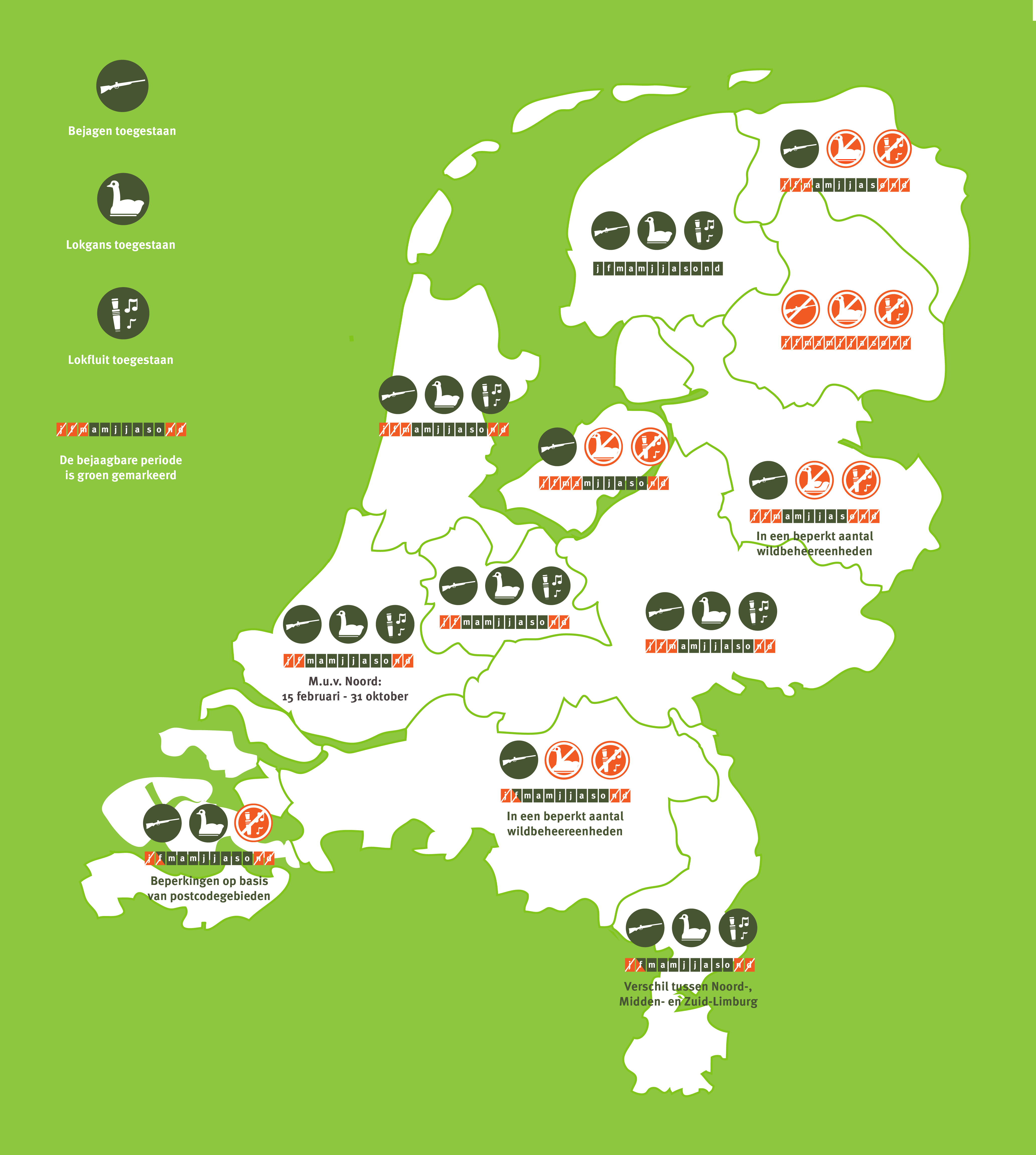 In Gelderland is ook het gebruik van lokfluiten toegestaan