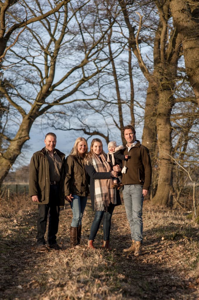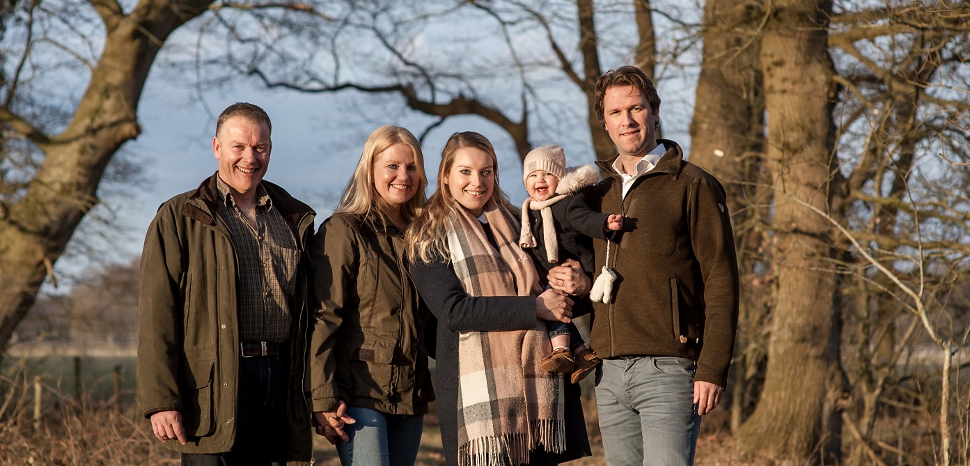 Van links naar rechts: Jaco van Kampen, Romy van Kampen, Lisa van Kampen met haar dochtertje Sophia op de arm en David Kremer.