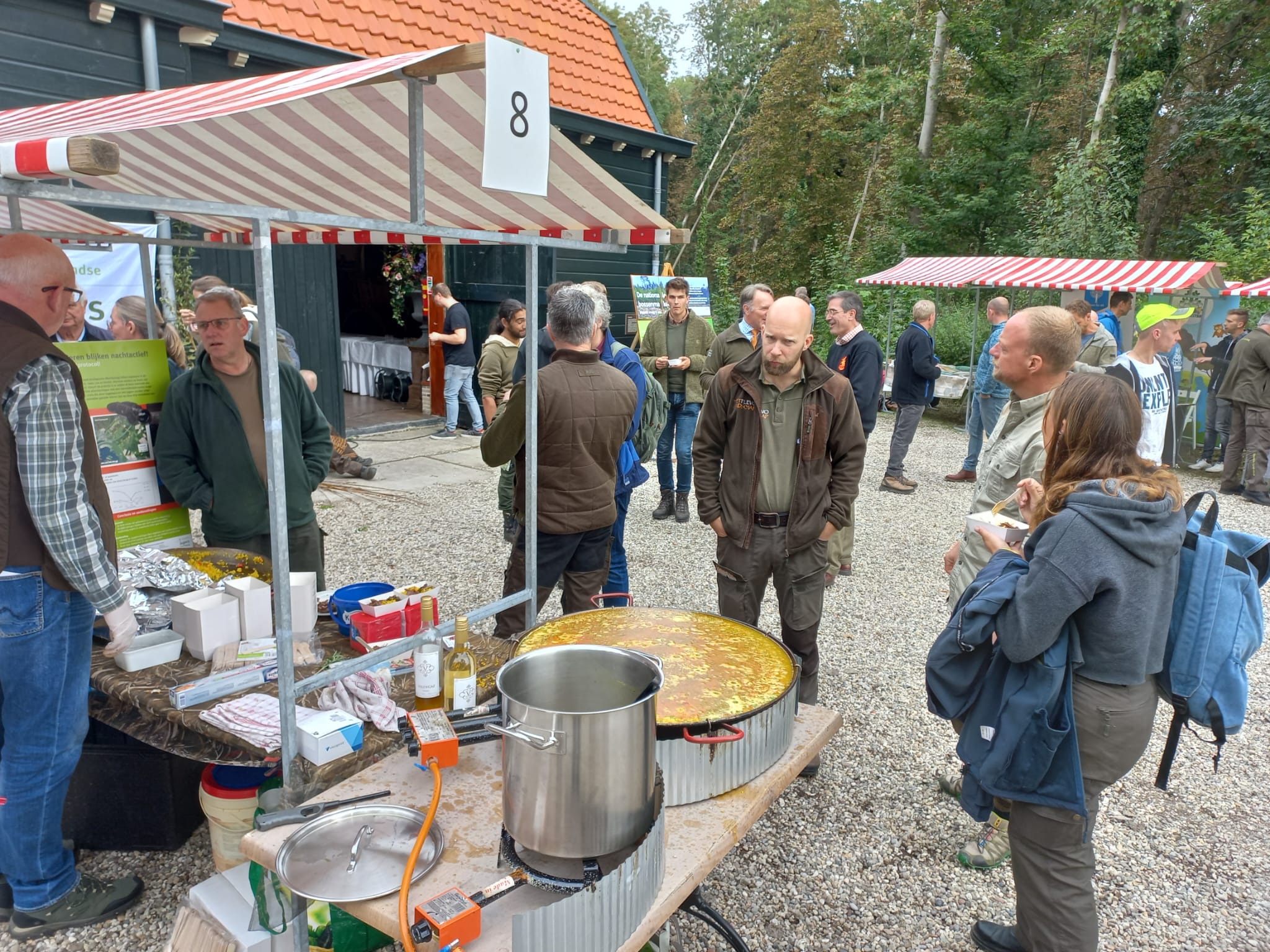 Ook de Jagersvereniging was aanwezig met een stand. Medewerkers van de ecologie-afdeling hebben veel bezoekers van de Beheerdersdag ontmoet en gesproken. Balten Schalkwijk, eigenaar van de Wildstube, verzorgde in de stand van de Jagersvereniging een overheerlijke wildpaella van gans. Jager en broedkorvenvlechter, Harry Enzerink, was ook aanwezig met een demonstratie over broedkorven vlechten.
