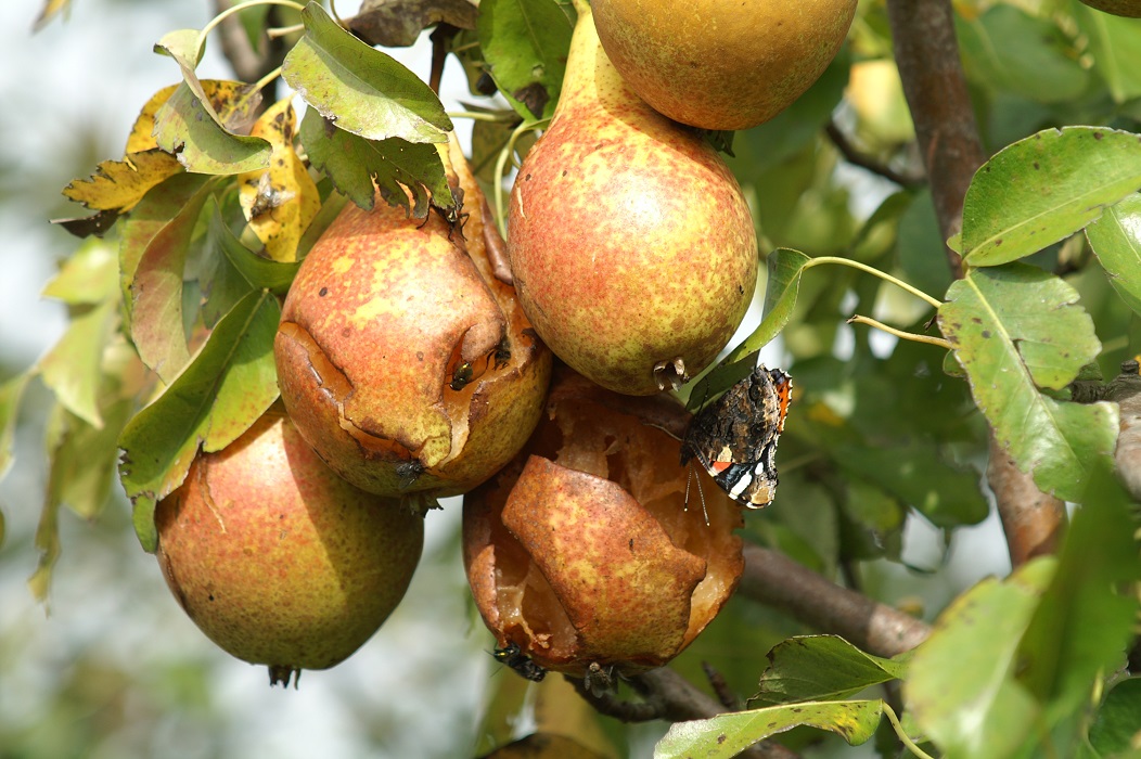 De schade door kraaien is twee weken na het plotselinge jachtverbod al enorm toegenomen, stelt fruitteler Geert Berben. Dit levert veel extra werk op, want wanneer de beschadigde peren niet weggehaald worden dan gaan ze rotten en daarbij steken ze ook andere peren aan.