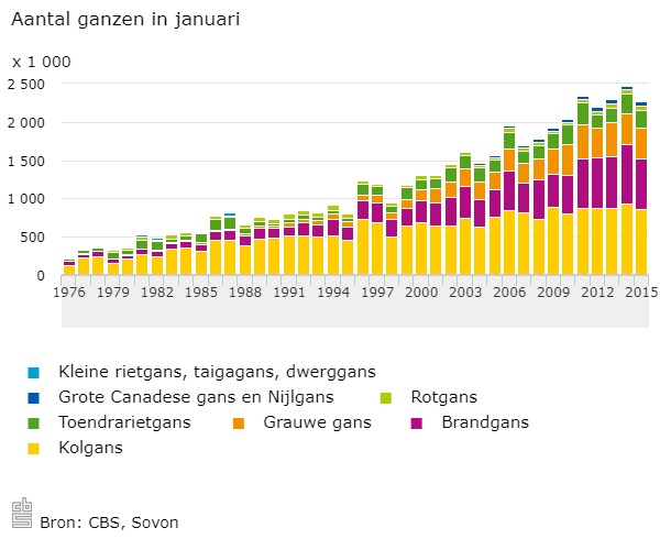 Aantal ganzen in januari in Nederland (Bron: CBS/SOVON)