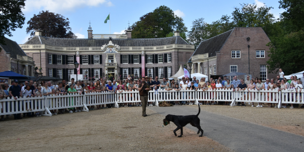 Naast een grote en gezellig aangeklede stand, verzorgde Gerald Verweij samen met andere (voor)jagers aantrekkelijke jachthondendemonstraties op het centrale plein voor het kasteel. Deze populaire demo’s konden voor veel kinderen niet lang genoeg duren. Vooral de water-apporten waren natuurlijk spectaculair.