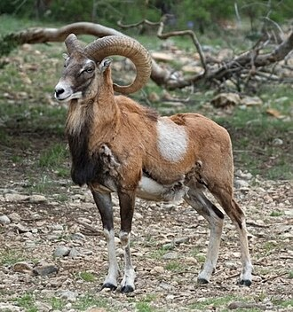 Moeflon (Ovis ammon). E: Mouflon, D: Mufflon, F: Mouflon