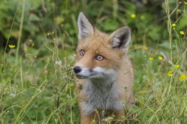 (Vulpes vulpes). E: Red fox, D: Rotfuchs, F: Renard