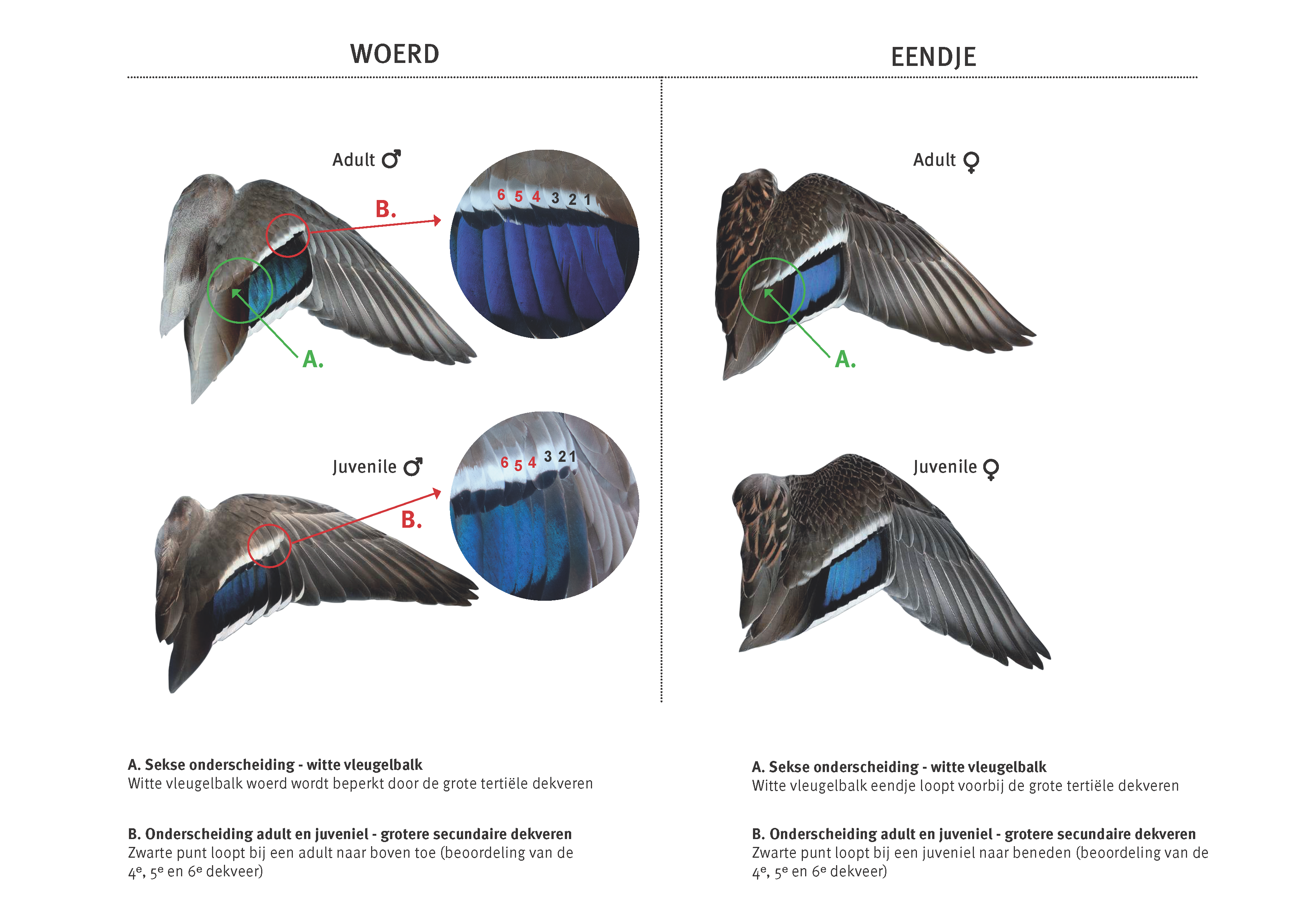 Vleugelonderzoek geeft inzicht in de populatiedynamiek van wilde eenden in Nederland. Op basis van de eigenschappen van de vleugels kunnen we onderscheid maken tussen geslacht- en leeftijdsklassen. Is er weinig afschot van jonge dieren? Dan duidt dat mogelijk op een probleem bij de voortplanting van wilde eenden. Zijn het voornamelijk woerden? Dan worden de eendjes door de jagers gespaard en de voortplanting ondersteund. Daarmee zijn de resultaten van het vleugelonderzoek van de Jagersvereniging een belangrijke graadmeter voor duurzame benutting van de wilde eend.