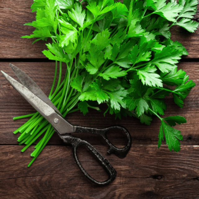 - Fruit de shii-take (zonder steel) kort aan in margarine. Breng op smaak met peper, zout en peterselie.