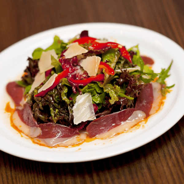 Een frisse en kleurrijke salade met gebakken wilde eendenborst, bloedsinaasappel en venkel. De combinatie van fruit, kruidige sla en rijke wildsmaak maakt dit gerecht tot een verrassend voor- of hoofdgerecht.