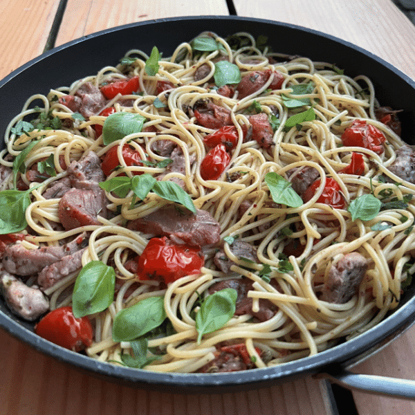 Een smaakvol Italiaans gerecht waarin malse hertenbiefstuk wordt gecombineerd met kruidige noedels, verse tomaatjes en mediterrane kruiden. De combinatie van rozemarijn, salie, oregano en basilicum zorgt voor een aromatisch en verfijnd wildgerecht dat eenvoudig te bereiden is.
