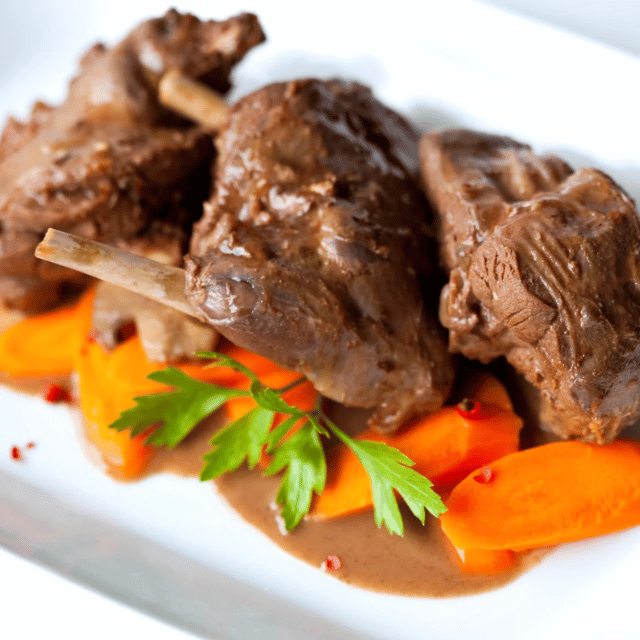 Serveer de stoofpot met knapperig brood of aardappelpuree om de rijke saus goed op te nemen.
